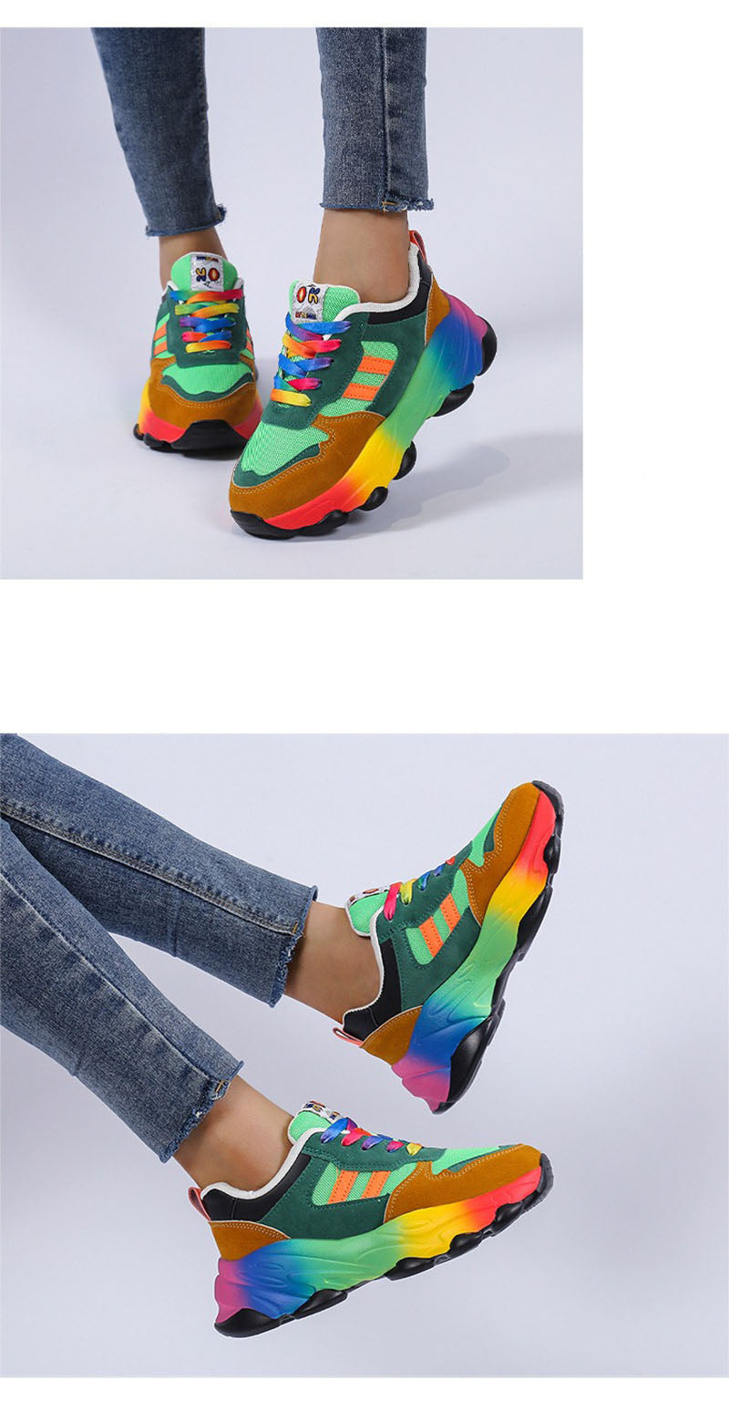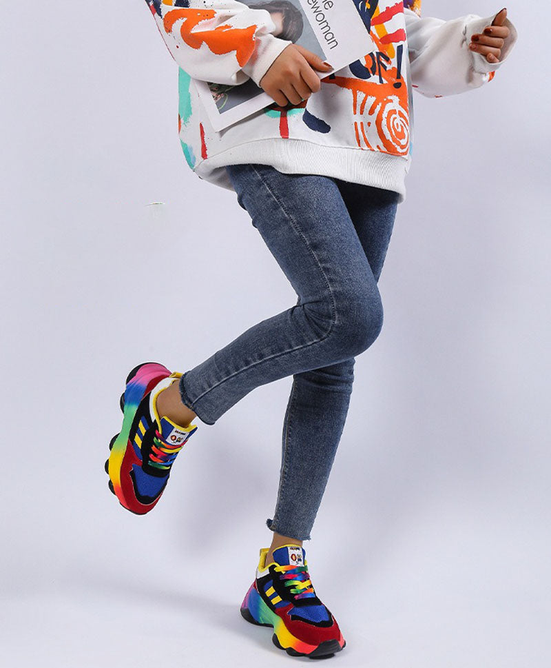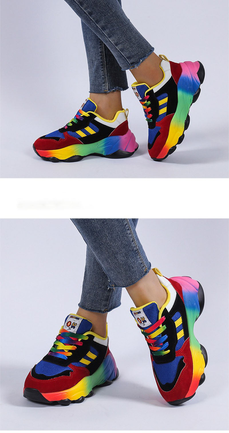 Casual Rainbow-bottom Lace-up Woven Breathable Sneakers