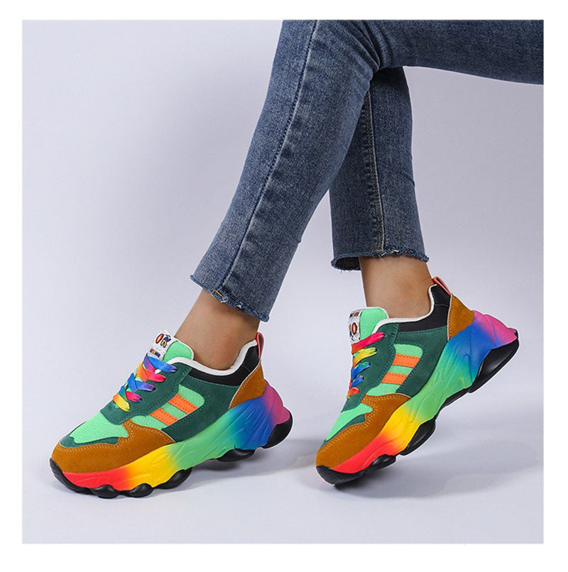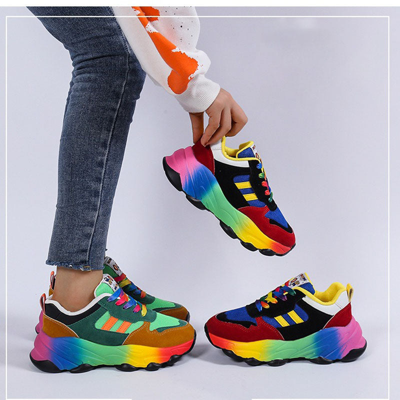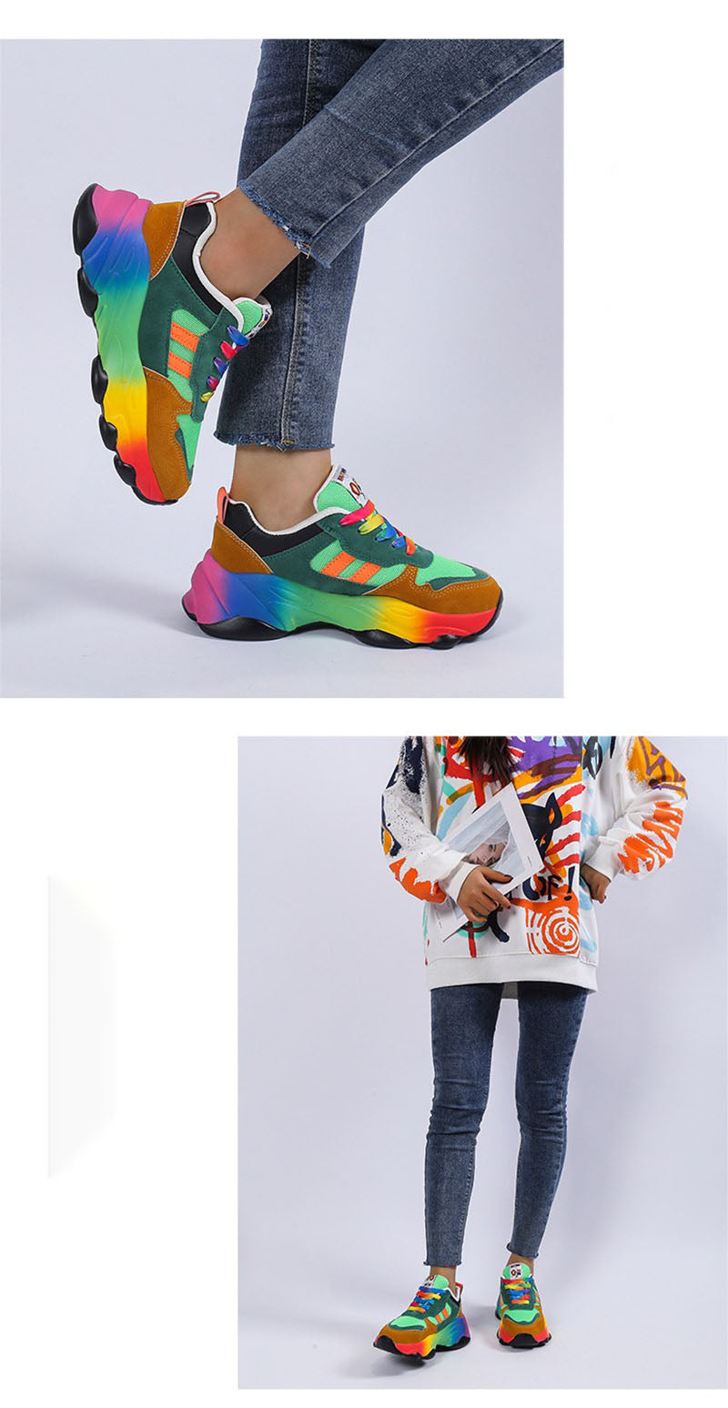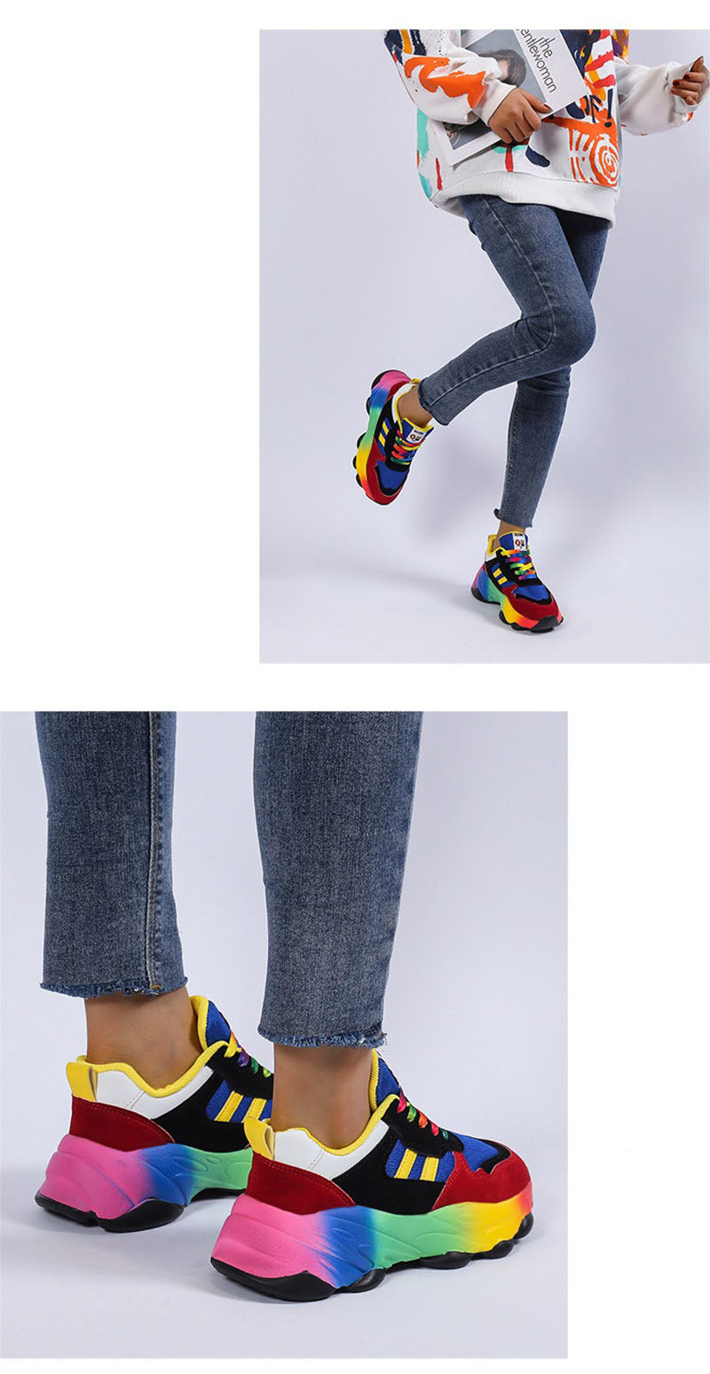 Casual Rainbow-bottom Lace-up Woven Breathable Sneakers