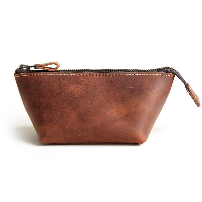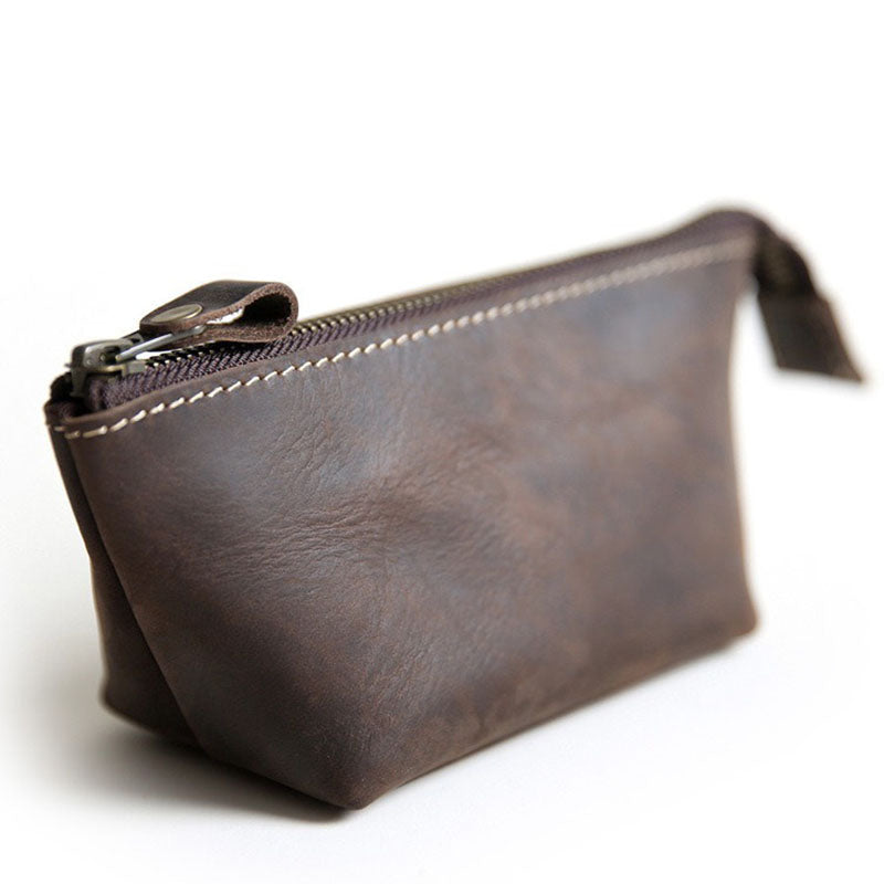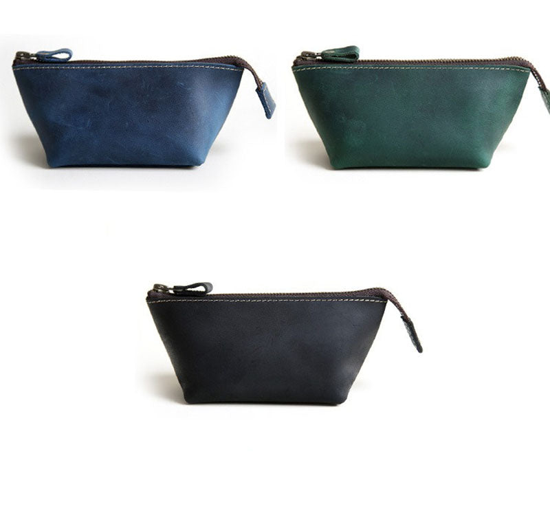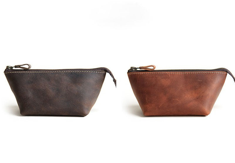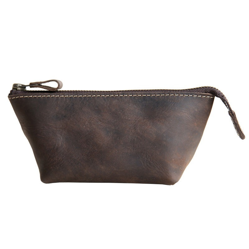 Crazy Horse Leather Hand Bag Zipper Long Retro Purse Collection Bag