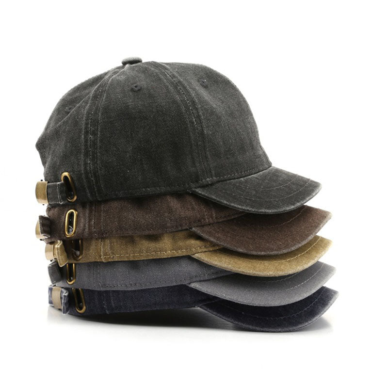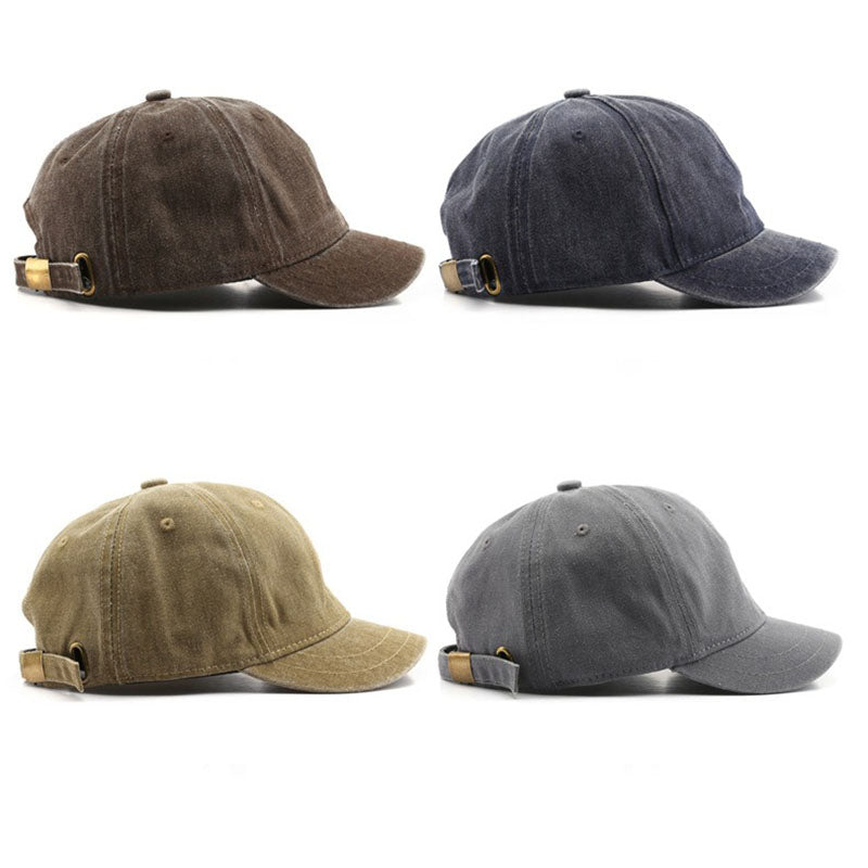 Vintage Short Brim Adjustable Washed Distressed Cotton Baseball Cap for Men & Women