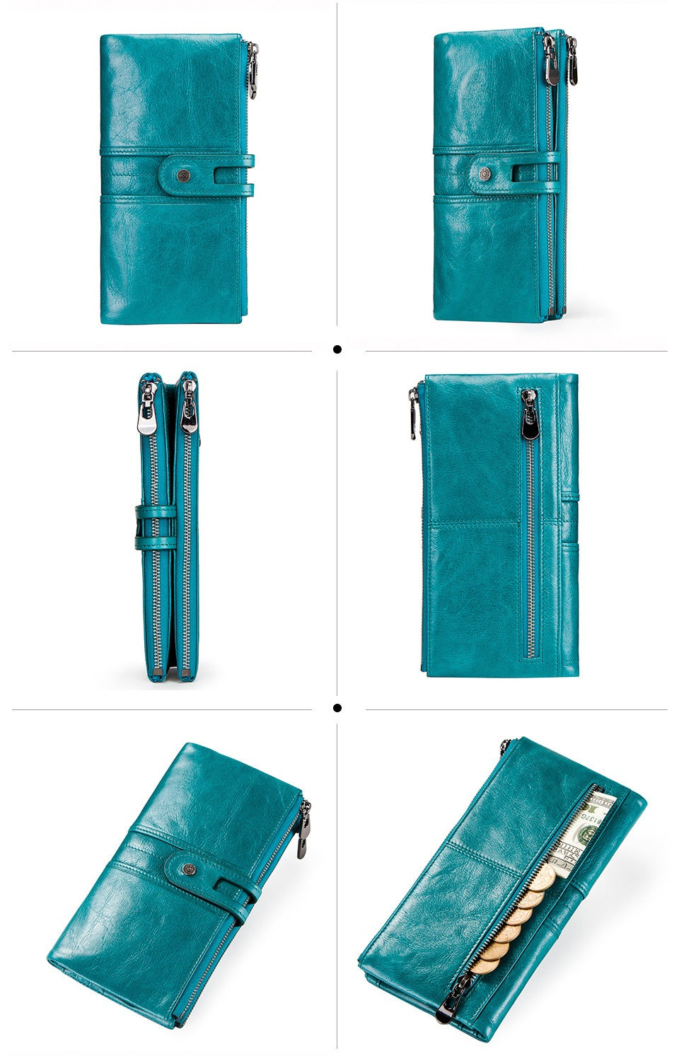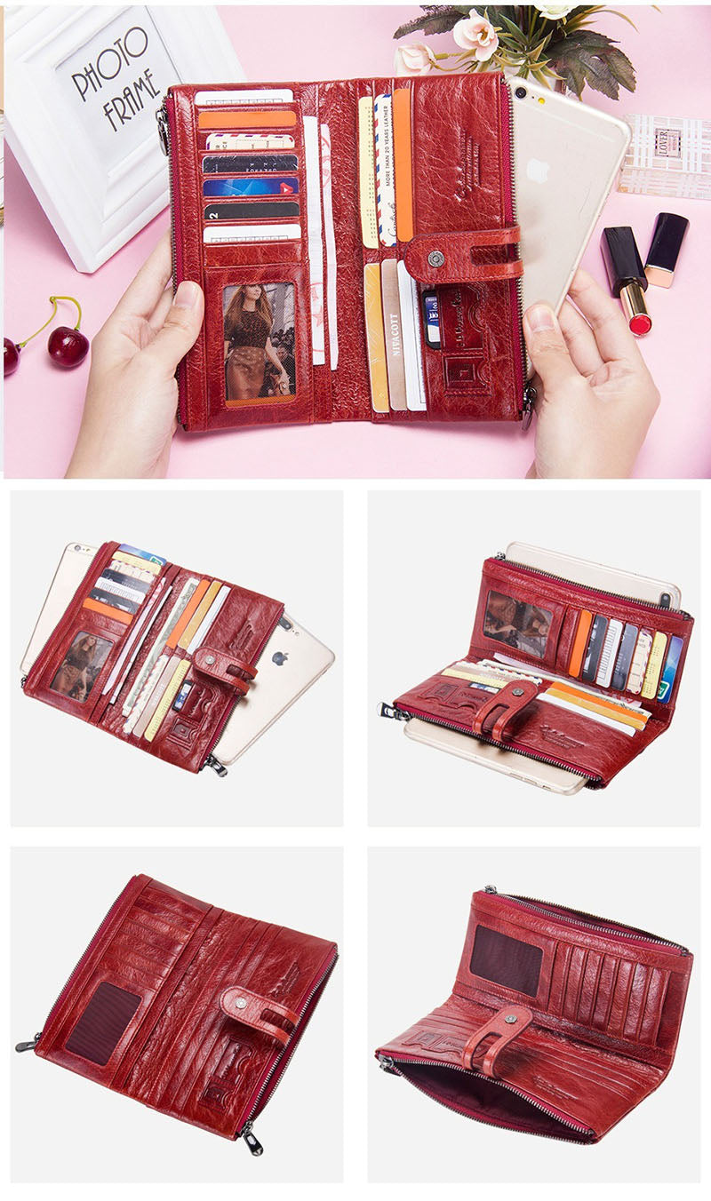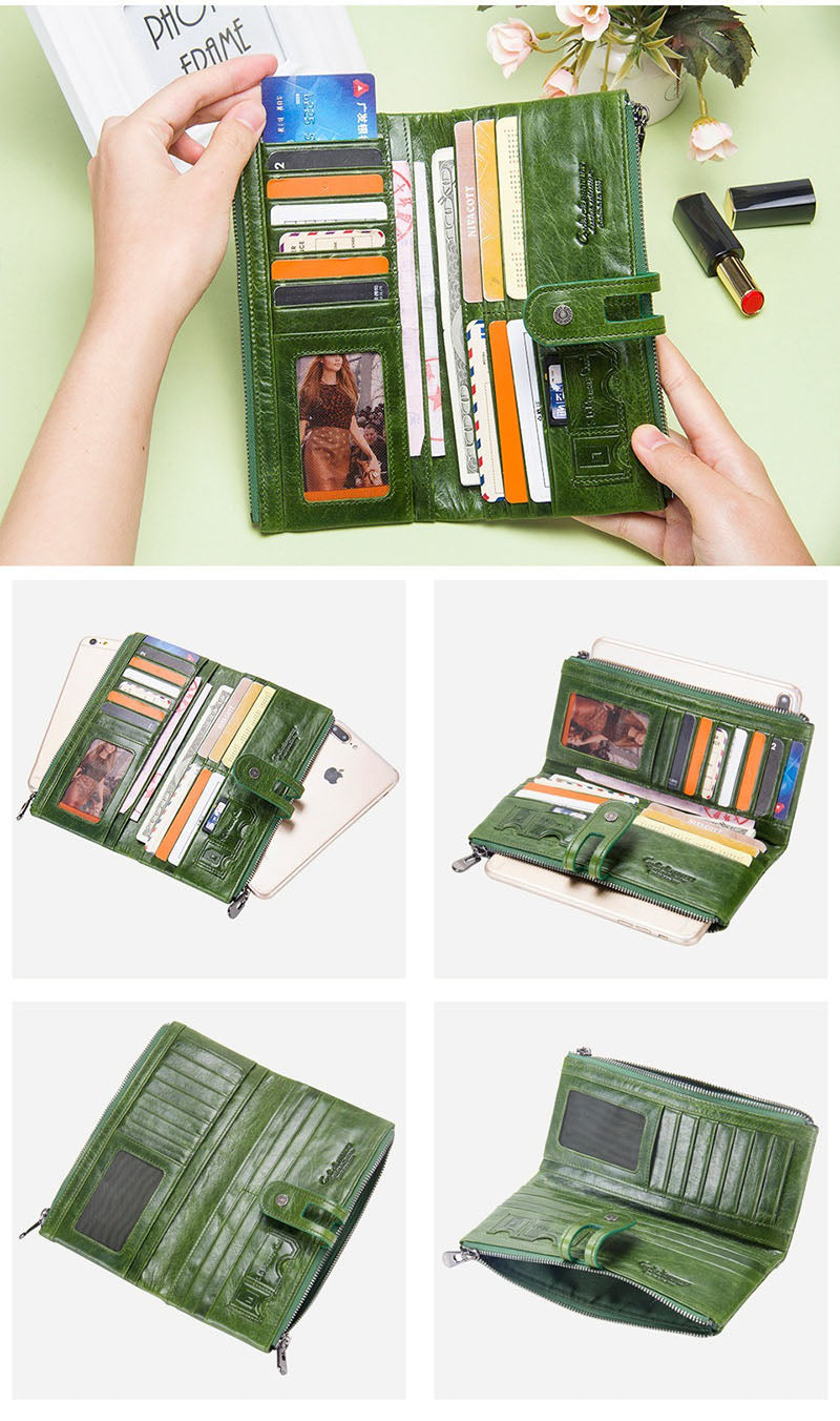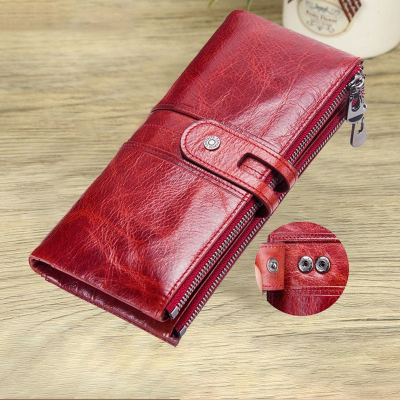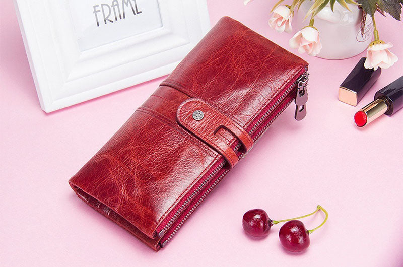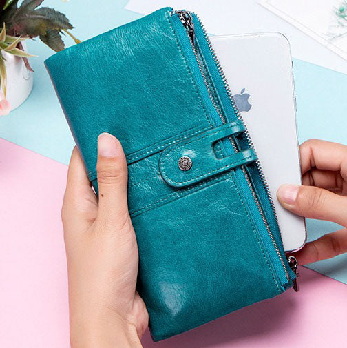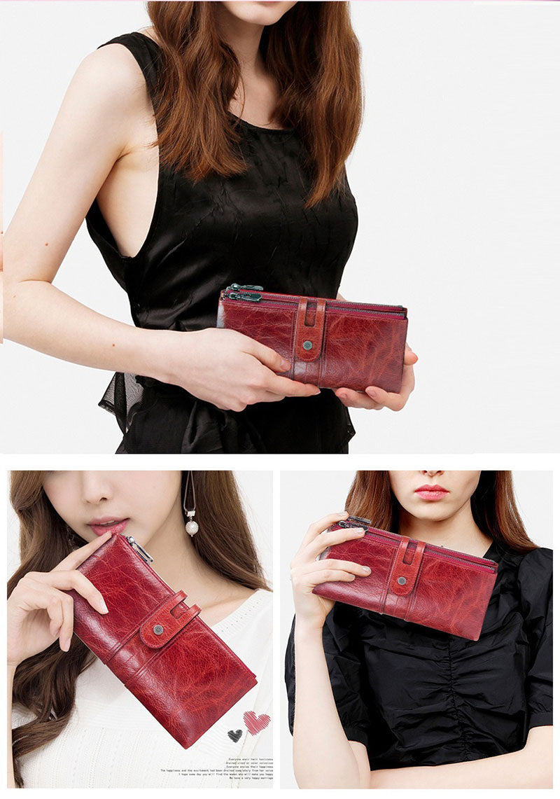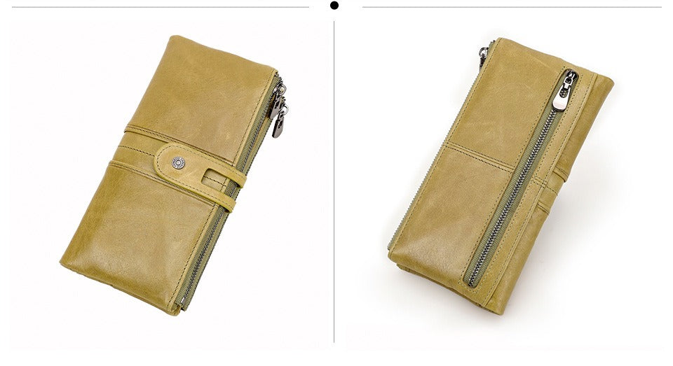 Vintage Cowhide Casual Buckle Women's Long Wallet Handbag